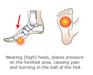 Morton’s Neuroma, or Metatarsalgia is one of the most common foot injuries. It consists of pain in the forefoot/toes and is due to repetitive loading of a concentrated force through this area while you are walking. That is why it is very commonly associated with wearing high heels or tight shoes.Morton’s Neuroma will commonly affect middle-aged females. They complain of sharp pain in the forefoot that can radiate into the toes. There can also be associated numbness and a burning sensation in the foot. It can feel like there is something inside the ball of your foot or like your sock is bunched up in your shoe. Pain will be worse when wearing high heels or tight shoes and relieved by removing your shoes.
